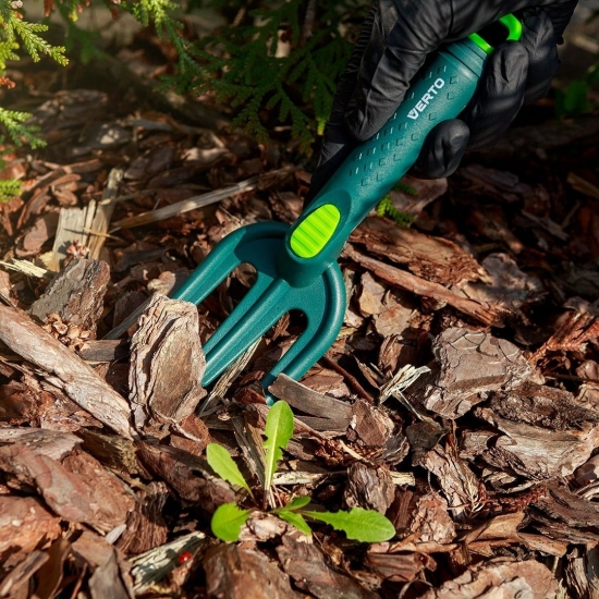 Садові вила Verto 15G412 — це зручний ручний інструмент для обробки ґрунту, пересадки рослин та видалення бур’янів. Компактні розміри та мала вага роблять їх ідеальними для точної та акуратної роботи на клумбах і в горщиках.