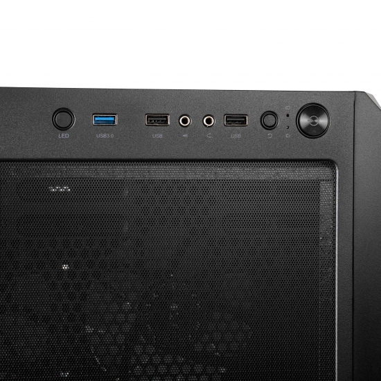 Роз’єми та кнопки: 1xUSB3.0, 2х USB 2.0, HD AUDIO+MIC, Power, Reset, LED, HDD LED