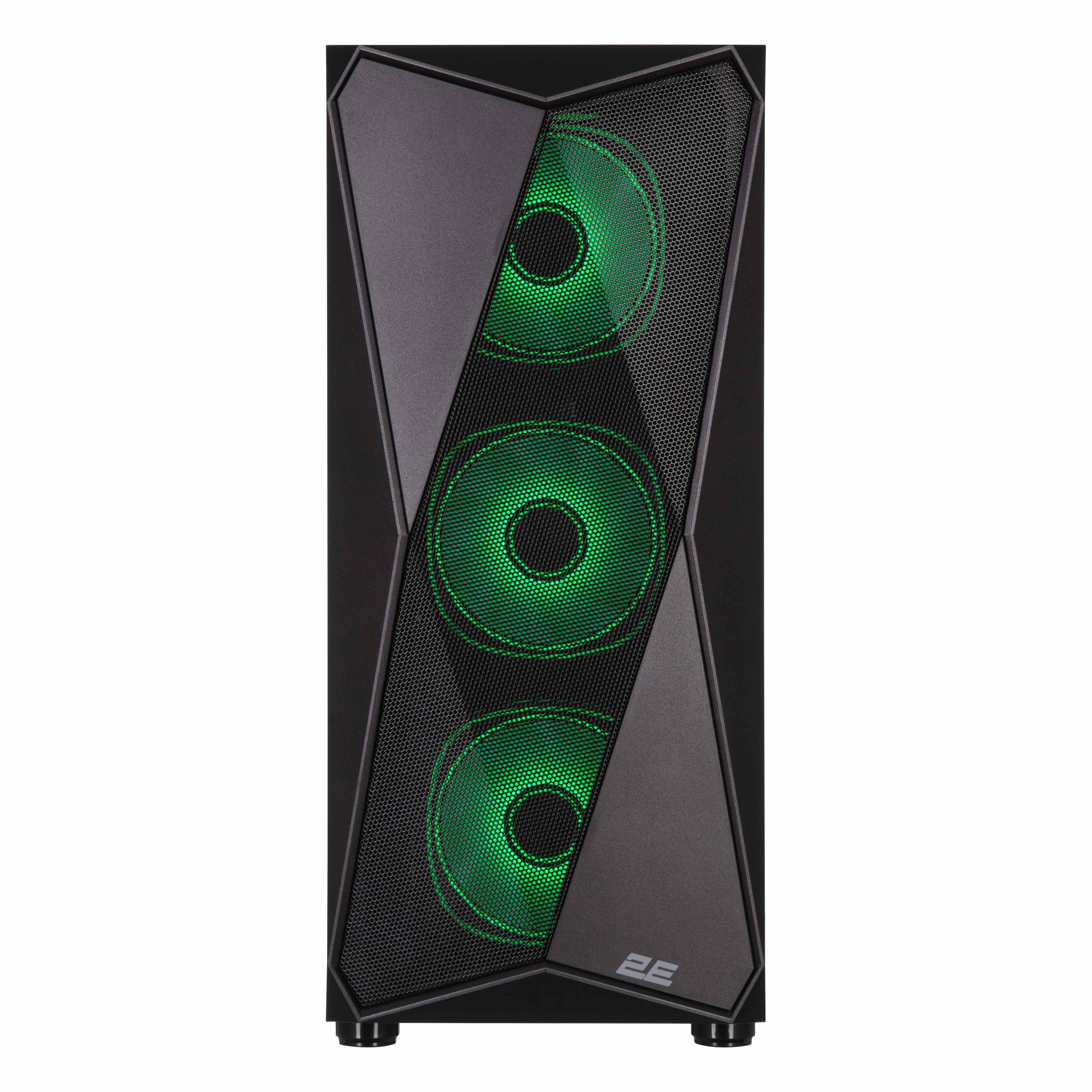 2E GAMING Aruba підходить для складання домашнього ПК та ігрових систем, має стильний дизайн та продуману вентиляцію. Максимальна довжина відеокарти – 300 мм. Корпус надає можливості монтажу достатньої кількості накопичувачів та численних плат розширення (7 слотів розширення). Передбачено встановлення до 8 вентиляторів та охолодження для процесора висотою до 165 мм. Корпус адаптований до можливості монтажу системи рідинного охолодження на передню панель – радіатори 240/280/360 мм, на задню – один 120мм та на верхню – 240/280мм радіатори, додатково передбачено простір для акуратного розміщення кабелів. На верхній/нижній панелях знімні пилові магнітні фільтри.