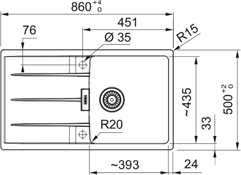 Franke Мойка кухонная Centro, фрагранит, прямоуг., с крылом, 860х500х200мм, чаша- 1, накладная, CNG 611-86, оникс