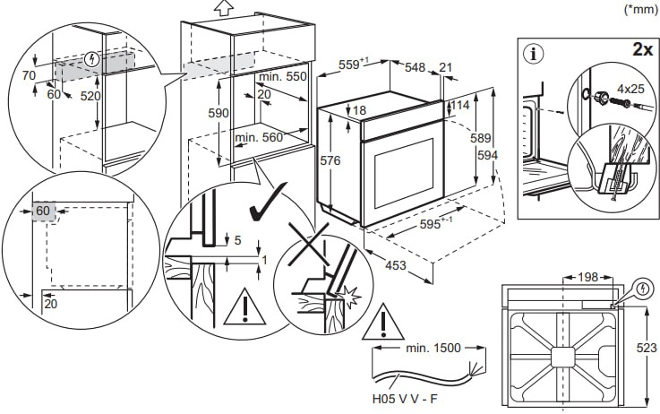 | Розміри для вбудовування ( ВхШхГ ) | 590x560x550 мм |