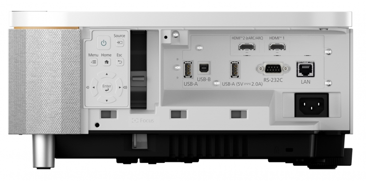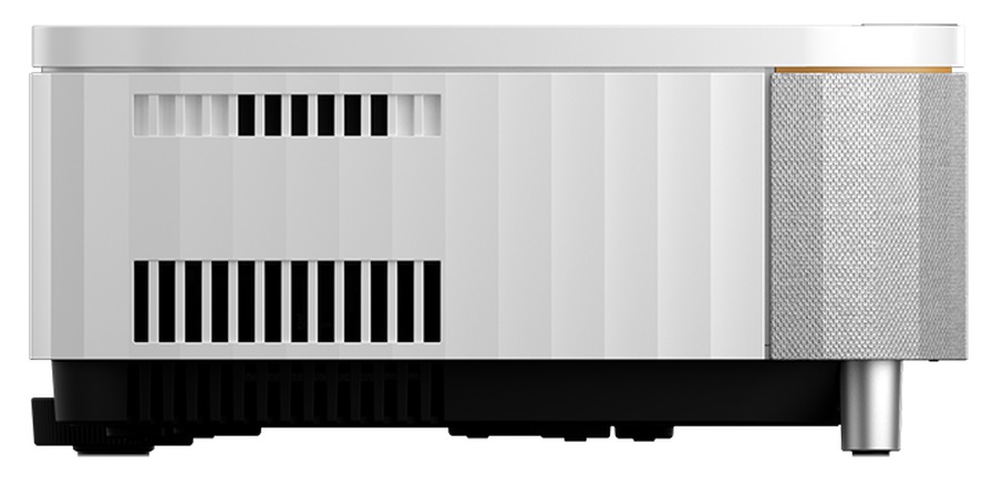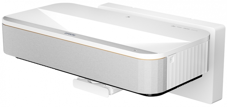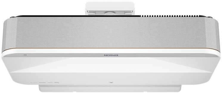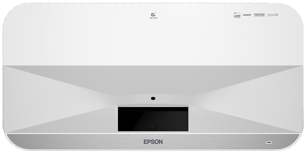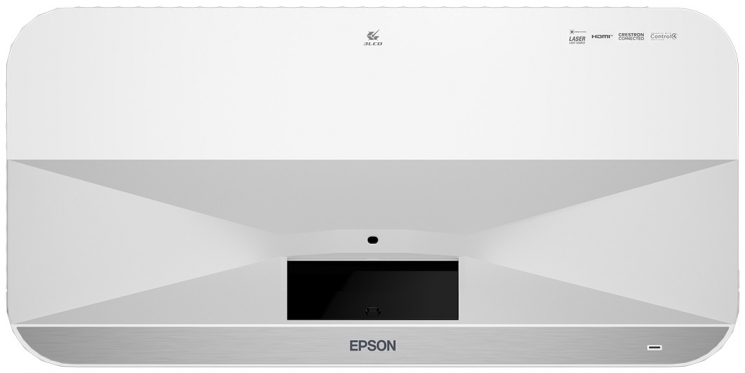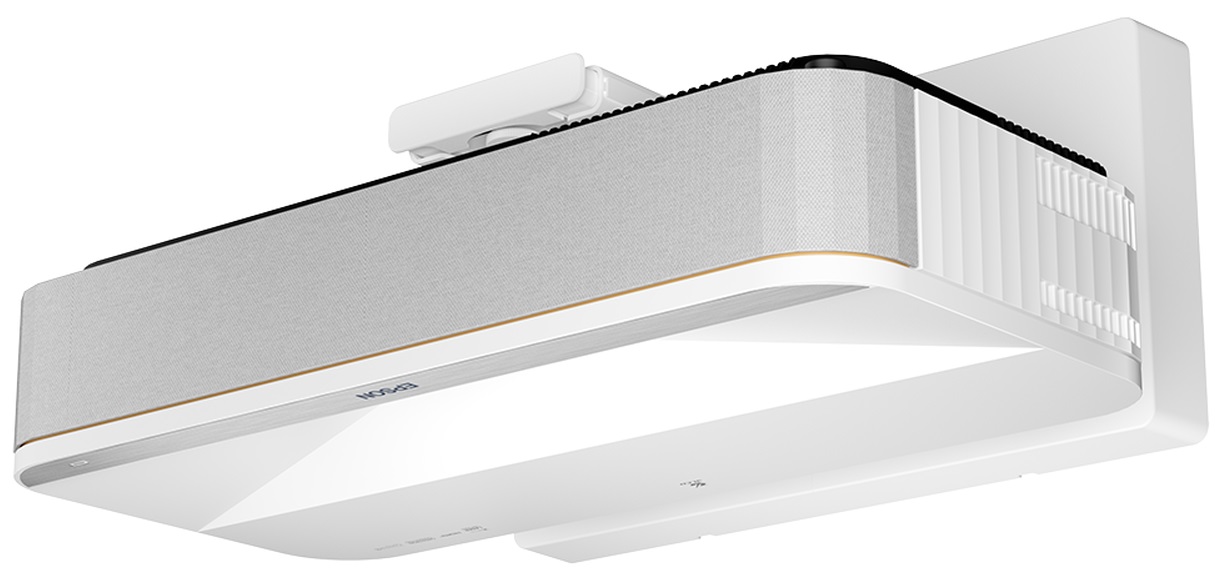 Проєктор Epson EH-QS100W створений для тих, хто хоче отримати величезне 4K-зображення без необхідності монтувати пристрій далеко від стіни. Ультракороткофокусна оптика (коефіцієнт проєкції 0.16) дозволяє виводити зображення діагоналлю понад 100 дюймів, розташувавши проєктор лише за кілька сантиметрів від екрана. Лазерна технологія забезпечує високу яскравість, довговічність та стабільну якість кольору. Цей проєктор підтримує HDR10, має сучасний дизайн та працює майже безшумно, що робить його ідеальним для домашнього кінотеатру у вітальні.