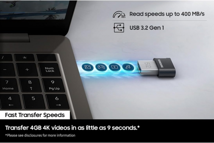 Компактний і надшвидкий накопичувач Samsung FIT Plus 512 GB USB 3.1/3.2 — ідеальний супутник для тих, хто цінує швидкість і надійність. Завдяки інтерфейсу USB 3.2 Gen 1 він читає до 400 МБ/с, дозволяючи передавати 4 ГБ файли за 9 сек у реальному середовищі. . Надміцний металевий корпус витримує занурення у воду (до 1 м на 72 години), удари, магнітні поля, рентген та екстремальні температури . Компактний форм-фактор дозволяє залишати накопичувач увімкненим у пристрої без ризику пошкодження або втрати. Міцність підтверджена п'ятирічною гарантією — FIT Plus поєднує продуктивність, надійність та витончений дизайн.
