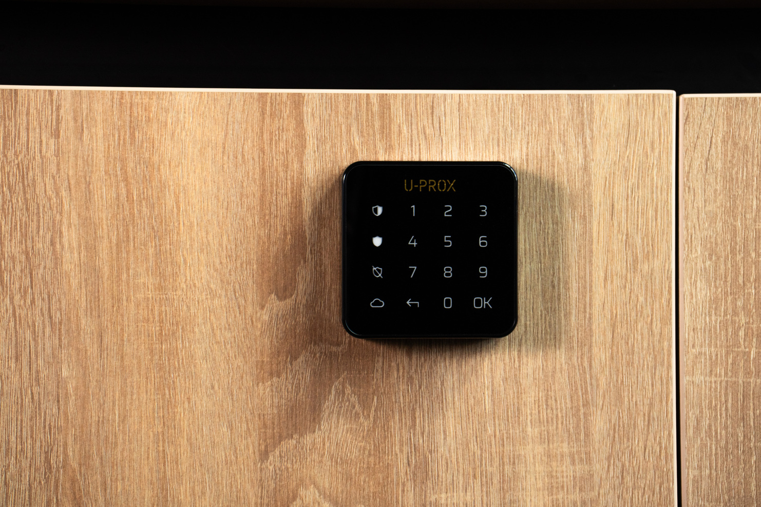 U-Prox Keypad G1 – це бездротова сенсорна клавіатура для керування однією охоронною групою. Забезпечує швидкий доступ до постановки та зняття системи з охорони, а також індикацію стану. Завдяки сучасному дизайну і зручному кріпленню підходить для будь-яких інтер'єрів.