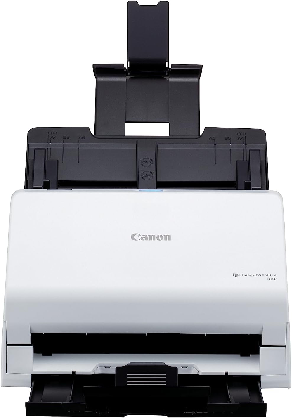 Canon imageFORMULA R30 — компактний професійний сканер із ADF (60 аркушів), що швидко сканує обидві сторони до 25 сторінок на хвилину (50 односторонніх) у кольорі та чорно-білому режимі. Має вбудоване ПЗ CaptureOnTouch Lite — просто під’єднай і скануй. Працює з Windows і Mac, споживає
