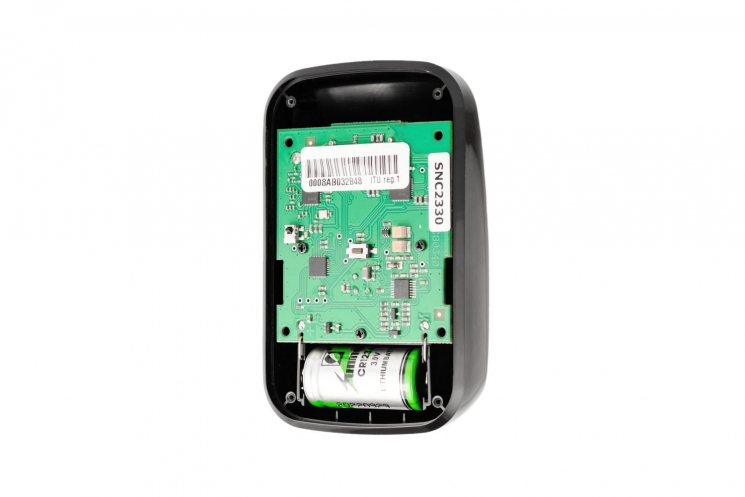 Пристрій працює на частоті 868–868.6 MHz через захищений двосторонній радіоканал з 256-бітним шифруванням і радіусом зв’язку до 4800 м (у відкритому просторі). Підтримується віддалене оновлення прошивки (OTA) та вбудована захист від саботажу (Tamper). Живлення забезпечується однією літієвою батареєю CR123A, термін служби — до 5 років. Монтаж здійснюється на стіну за допомогою плоского або кутового кронштейна з комплекту. Робочий температурний діапазон — від –10°C до +55°C, допустима вологість — до 75%.