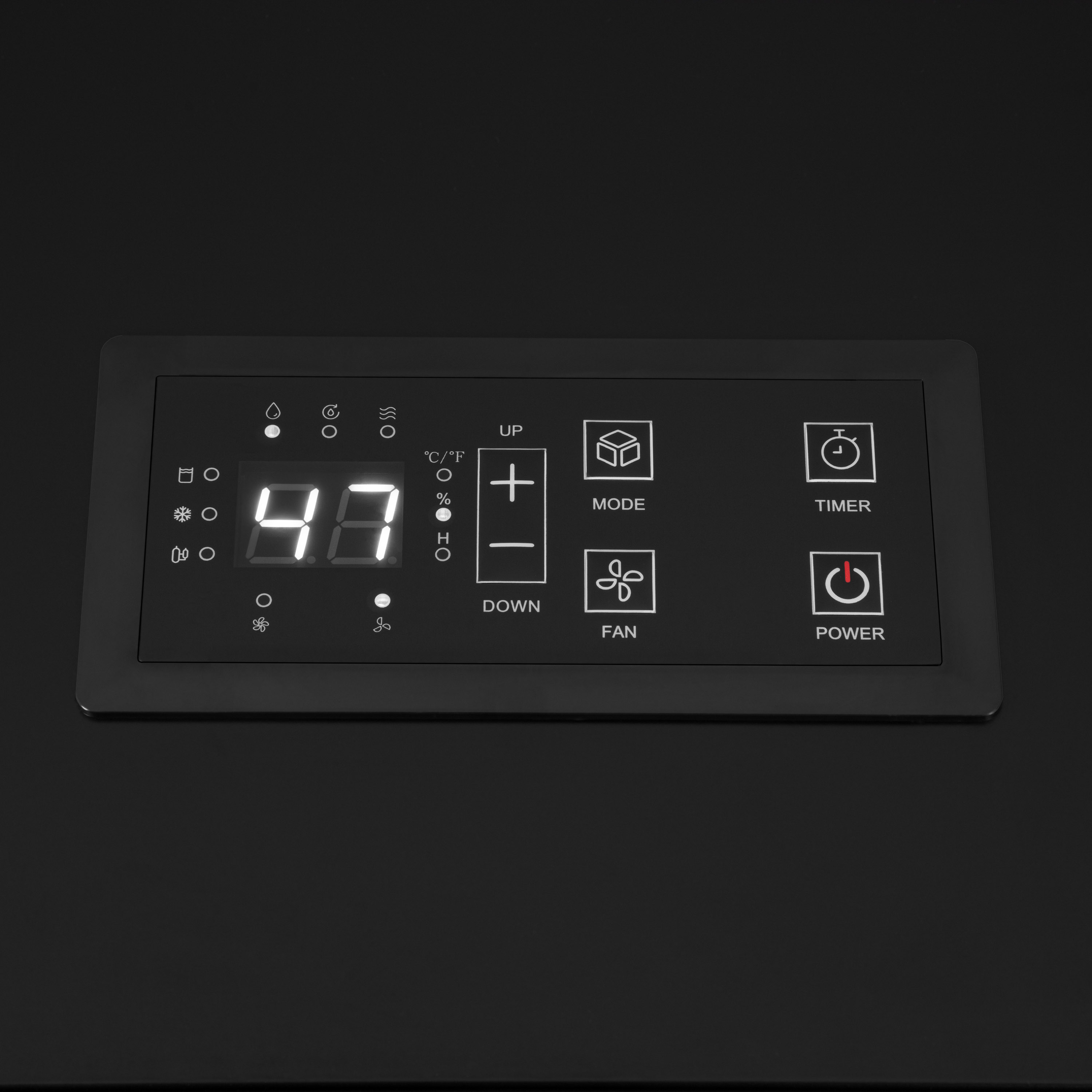 Діапазон контролю вологості повітря становить від 10 % до 95 % RH, що дає змогу адаптувати пристрій до специфічних технологічних потреб чи умов зберігання. Усі налаштування здійснюються за допомогою панелі керування з кнопками, а вибраний параметр відображається на LCD-дисплеї. Після встановлення бажаного показника на дисплеї буде зазначено актуальний рівень вологості в режимі реального часу.