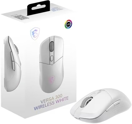 MSI VERSA 300 WIRELESS WHITE — універсальна легка миша вагою лише 60 г, поєднує стиль, комфорт і багатофункціональність. Сенсор PixArt PAW3104 з максимальною чутливістю 8000 DPI і частотою опитування 1000 Hz забезпечує точне й миттєве реагування курсору — важливо як у роботі, так і під час ігор. Перемикачі Kailh витримують понад 30 млн натискань, що гарантує довговічність і надійність.