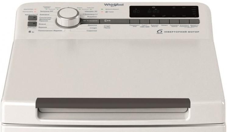 Головна - Побутова техніка, інструменти та товари для дому - Велика побутова техніка - Пральні машини - Whirlpool - Пральна машина Whirlpool вертикальна, 6кг, 1200, A+++, 60см, дисплей, інвертор, білий