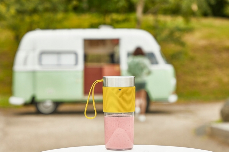 Блендер Lightmix On-The-Go легко поміщається в сумці — вага лише близько 530 г. Чаша з тритану — міцна та не б’ється, є силіконовий ремінець для перенесення. Завдяки потужному мотору (50 Вт) він швидко подрібнює інгредієнти за 40 с, досягаючи швидкості обертів 20 000 об/хв. Живлення забезпечує літій-іонна батарея 1200 мА·год — до 11 циклів на одному заряді. Чаша з герметичною кришкою дозволяє змішувати прямо в ній і брати з собою напіток. Легко очищується — достатньо додати воду з миючим засобом і запустити — а чашу можна помити в посудомийці.