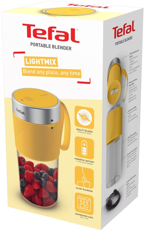 Головна - Побутова техніка, інструменти та товари для дому - Техніка для кухні - Для підготовки продуктів - Блендери - Tefal - Блендер Lightmix портативний для смузі, чаша-300мл, USB, тритан, жовтий