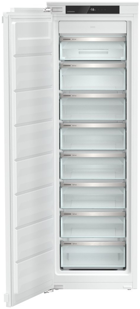 Система VarioSpace дозволяє знімати шухляди та скляні полички, щоб зберігати великі об’єми або габаритні упаковки. Ящики FrostSafe мають закриту конструкцію з прозорими фронтами, що дозволяє зберігати холод навіть при відкритих дверцятах. Загалом — 8 функціональних відсіків для оптимальної організації простору.