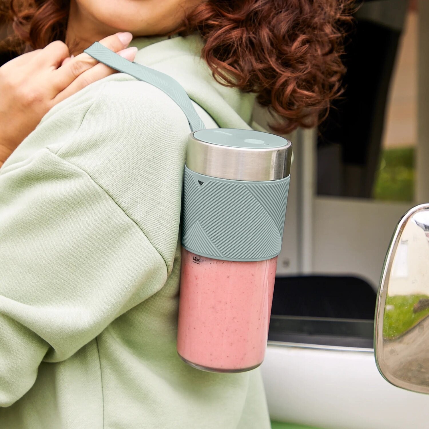 Tefal Lightmix BL1C0230 — компактний портативний блендер для смузі з чашею 300 мл з тритану, живленням від USB і ремінцем. Потужний, тихий і зручний для використання вдома, в офісі чи в дорозі.