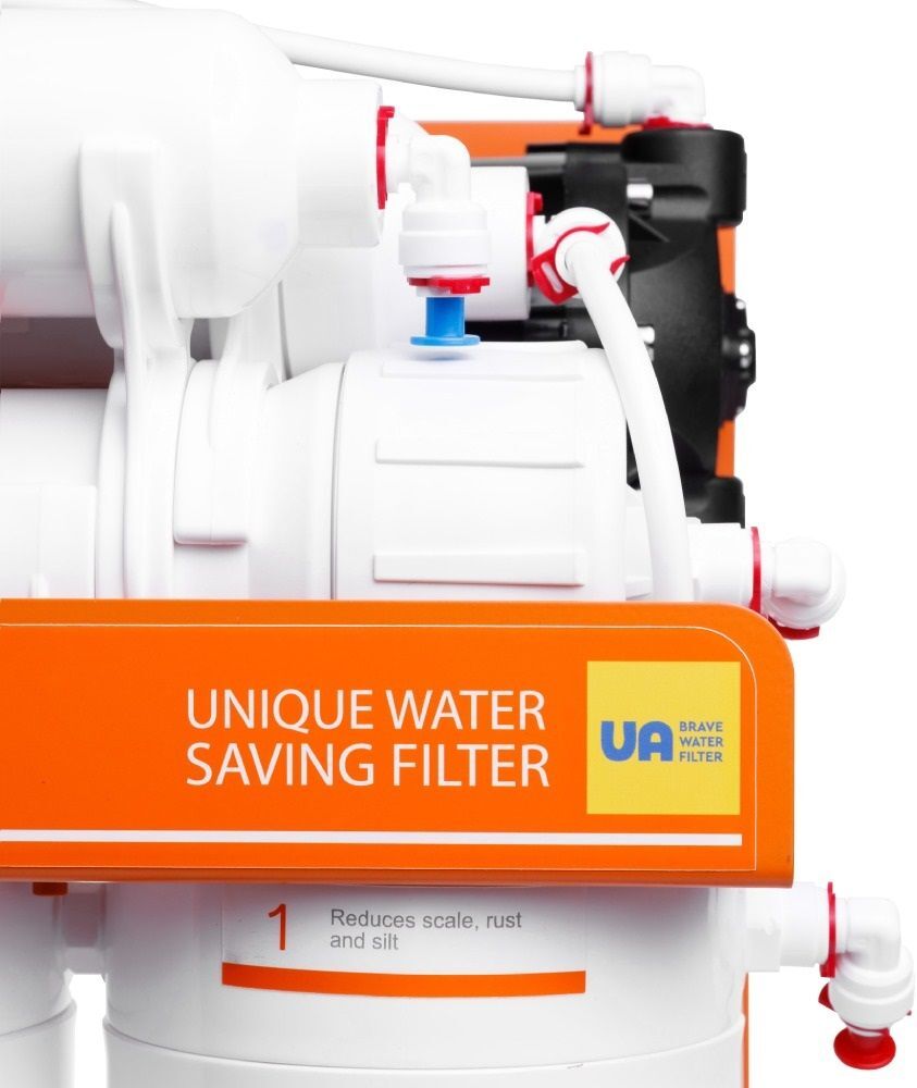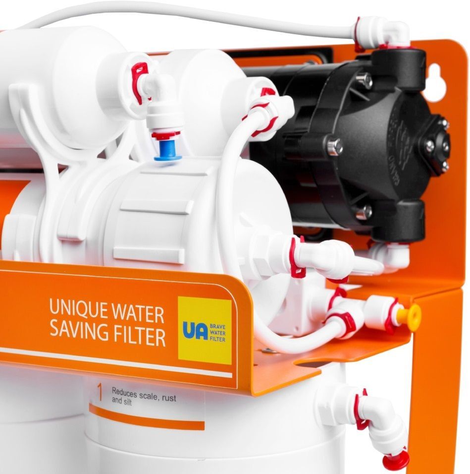 Фільтр зворотного осмосу Ecosoft Absolute MO675MPSECO — компактне рішення для очищення водопровідної води з низьким тиском. Оснащений помпою, мінералізатором та системою економії води, яка дозволяє зменшити стоки в каналізацію до 1:1. Забезпечує 6 ступенів очищення, включно з видаленням 99,8% домішок, а також відновлює мінеральний склад води. Продуктивність — 280 л/добу, об'єм бака — 7 л. Ідеально підходить для сім’ї з трьох осіб.