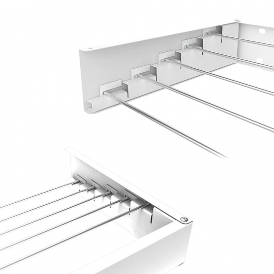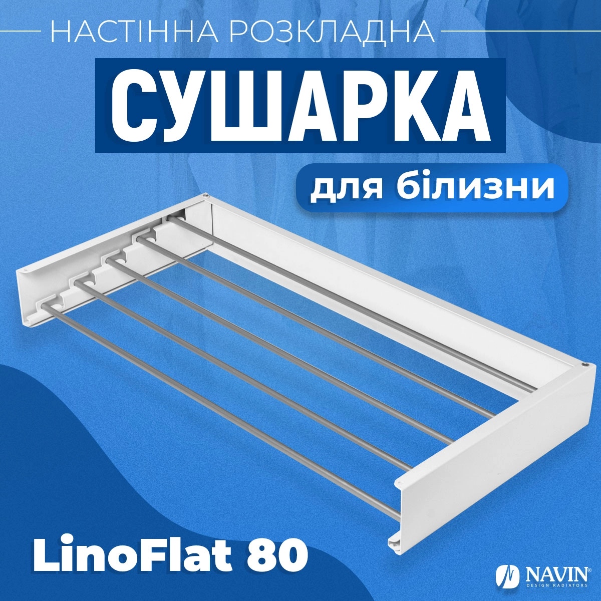 Складна настінна сушарка для білизни NAVIN LinoFlat 80 — компактне та практичне рішення для дому. Виготовлена з міцного металу із захисним полімерним покриттям, вона витримує до 25 кг і підходить для використання у ванній, на балконі, в коридорі чи на дачі. Механізм легко розкладається, відкриваючи 5 стрижнів загальною довжиною 4 м. Простий монтаж, сучасний дизайн і компактність роблять її зручною для будь-якого інтер'єру.