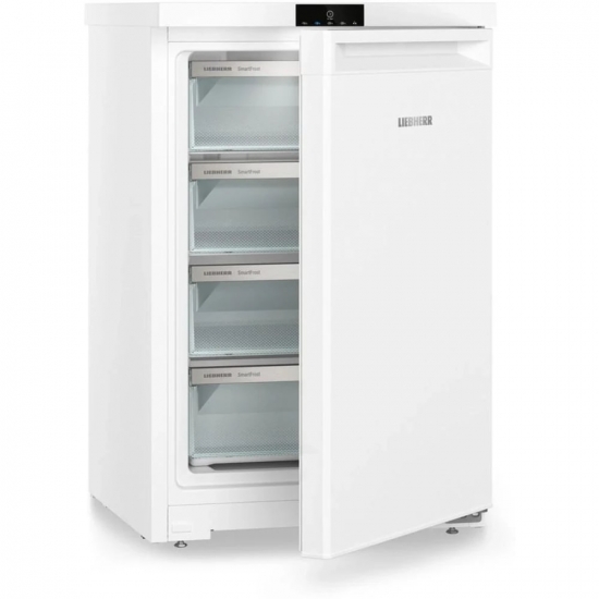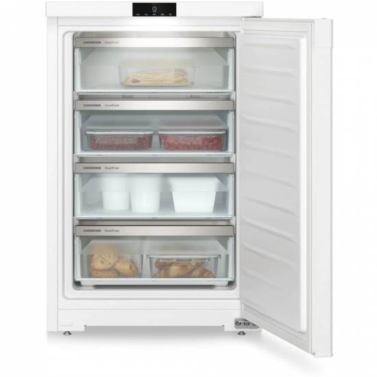 Liebherr FE 1404 — компактна італійська морозильна камера об'ємом 107 л, ідеальна для підстільного або вбудованого монтажу. Вона обладнана системою SmartFrost, яка мінімізує утворення інею та пришвидшує заморожування, і SuperFrost, що активується через сенсорну панель для швидкої фіксації температури. Чотири місткі прозорі шухляди FrostSafe забезпечують зручну організацію продуктів. Оснащена додатковим LED-освітленням, цифровим дисплеєм і попередженнями при підвищенні температури. Клас енергоспоживання — E (172 кВт·год/рік), рівень шуму — 37 дБ, габарити — 85×55×60,7 см. Надійний варіант для обмежених просторів.