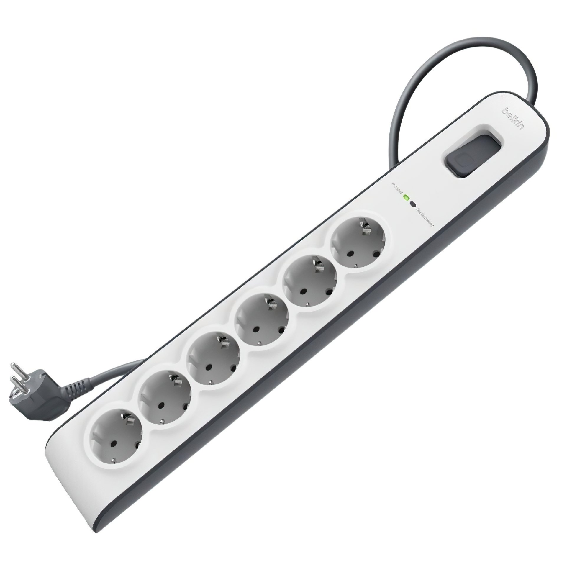 Головна - Продукція та рішення для підприємств - Електротовари та світло - Мережеві фільтри - Belkin - Подовжувач-фільтр мережевий 6хТип F, 3x1.5мм кв, 16А, з захистом від перенапруги, 2м, білий