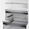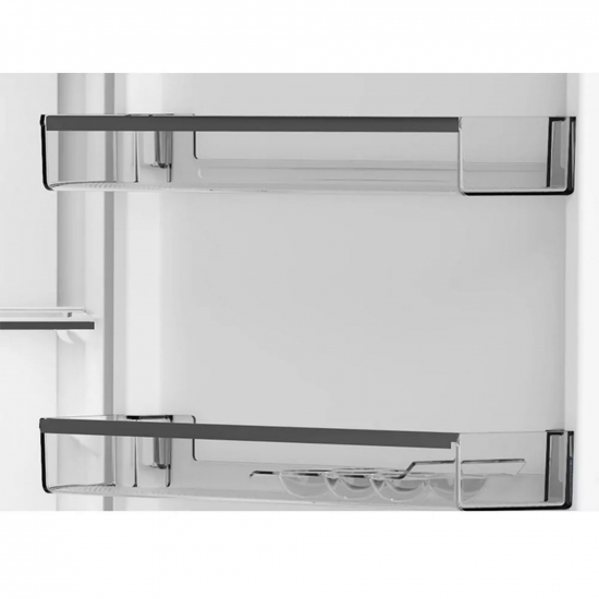 Оснащене чотирма скляними полицями, чотирма дверними кошиками, двома контейнерами для овочів і підвісною полицею для пляшок. Зручне розташування елементів забезпечує легкий доступ до продуктів.