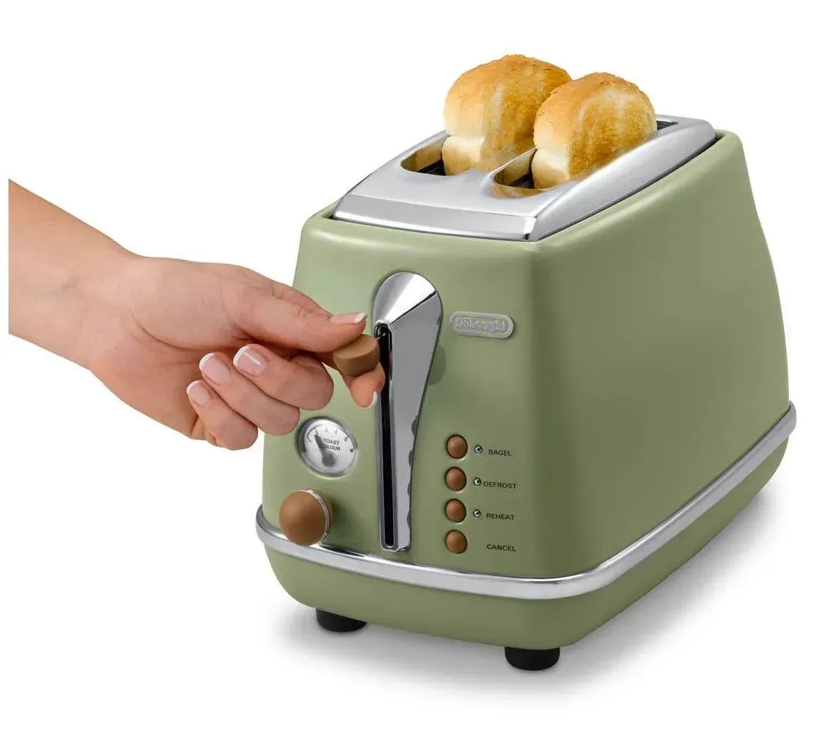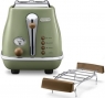 Опис Тостер DeLonghi ICONA VINTAGE 900Вт, метал, підігрів,разморозка, оливковий