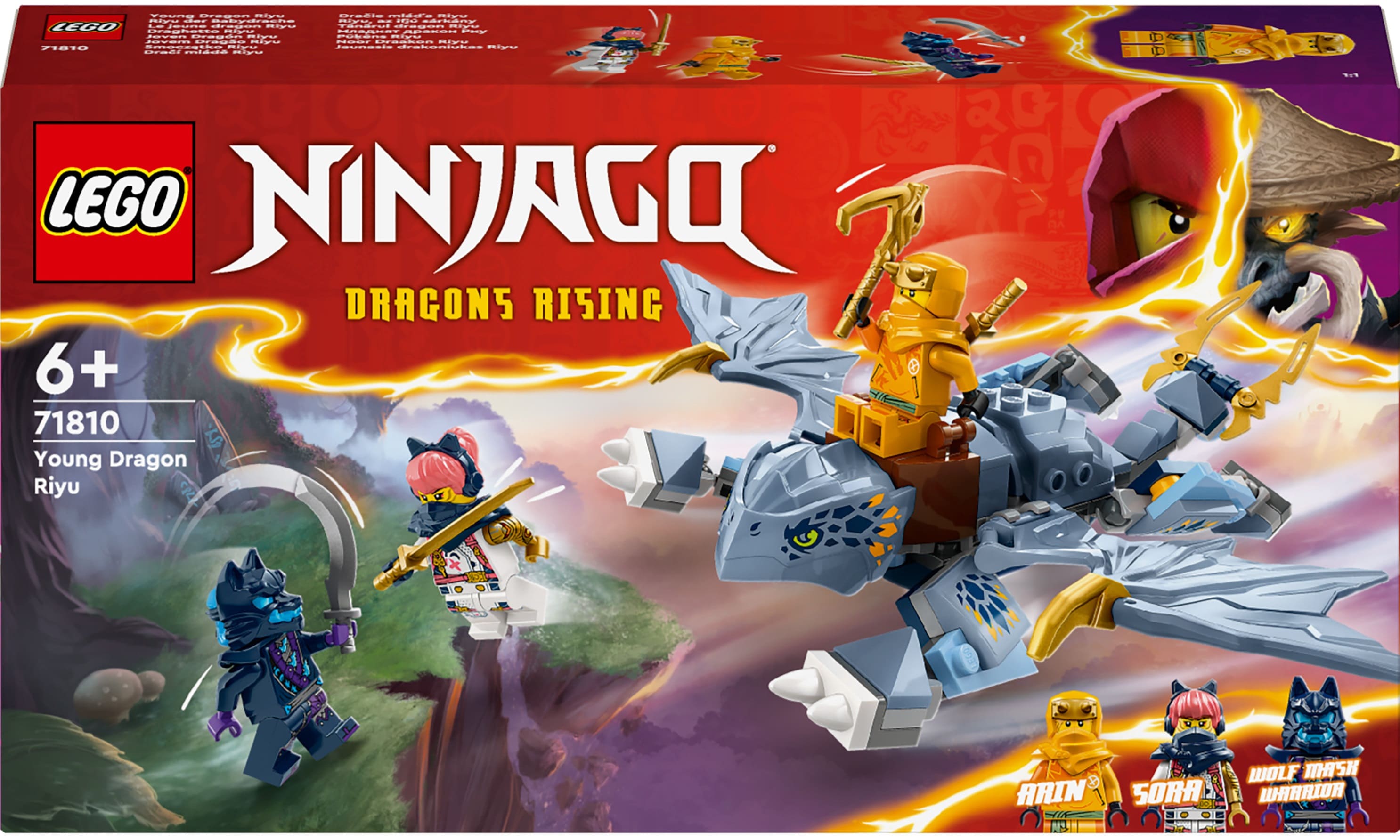 Хлопчики та дівчатка від 6 років можуть відтворювати повітряні пригоди з 2 сезону серіалу NINJAGO® Повстання драконів за допомогою набору Молодий дракон Рію (71810). У цьому ігровому наборі є модель молодого дракона Рію з рухомими крилами та лапами, гнучким хвостом і сідлом, щоб мініфігурки могли кататися на його спині.