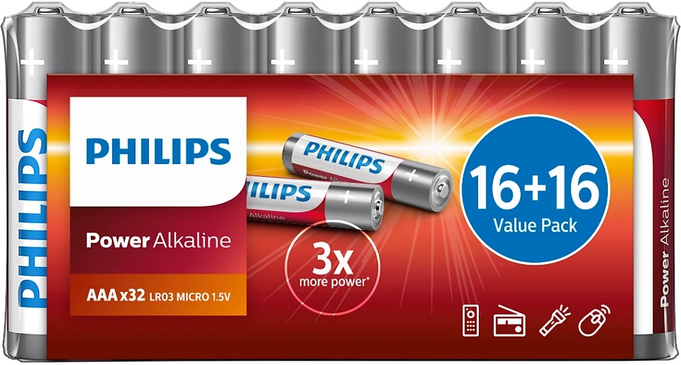Опис Батарейка Philips Power Alkaline AAA лужна. плівка, 32 шт