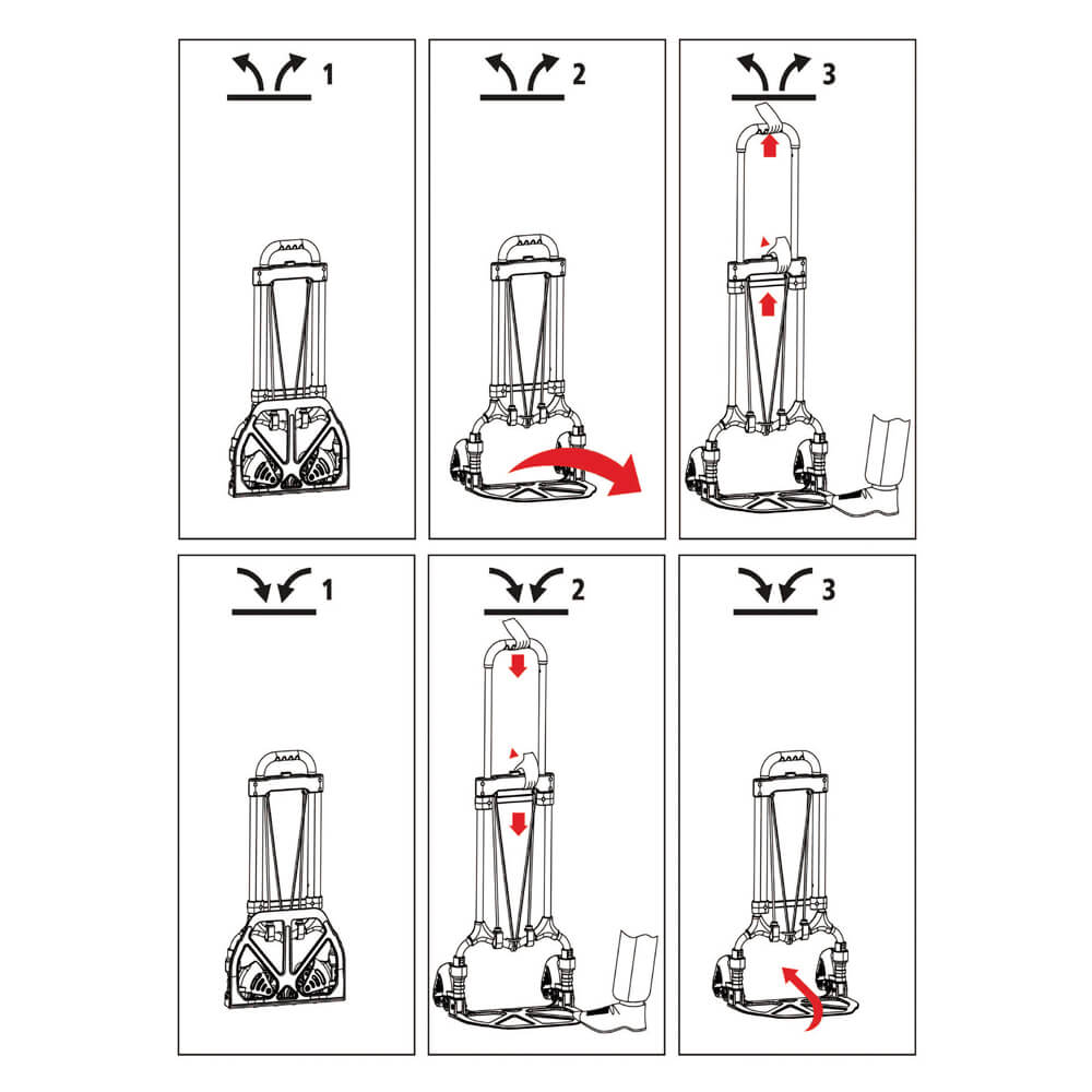 Платформа розміром 39×29 см забезпечує достатньо місця для стабільного розміщення вантажу. Зручні колеса та телескопічна ручка дозволяють легко переміщати предмети навіть у вузьких проходах. Після використання візок складається буквально за кілька секунд — у складеному вигляді він займає мінімум місця, що зручно для зберігання у багажнику автомобіля чи комірчині.