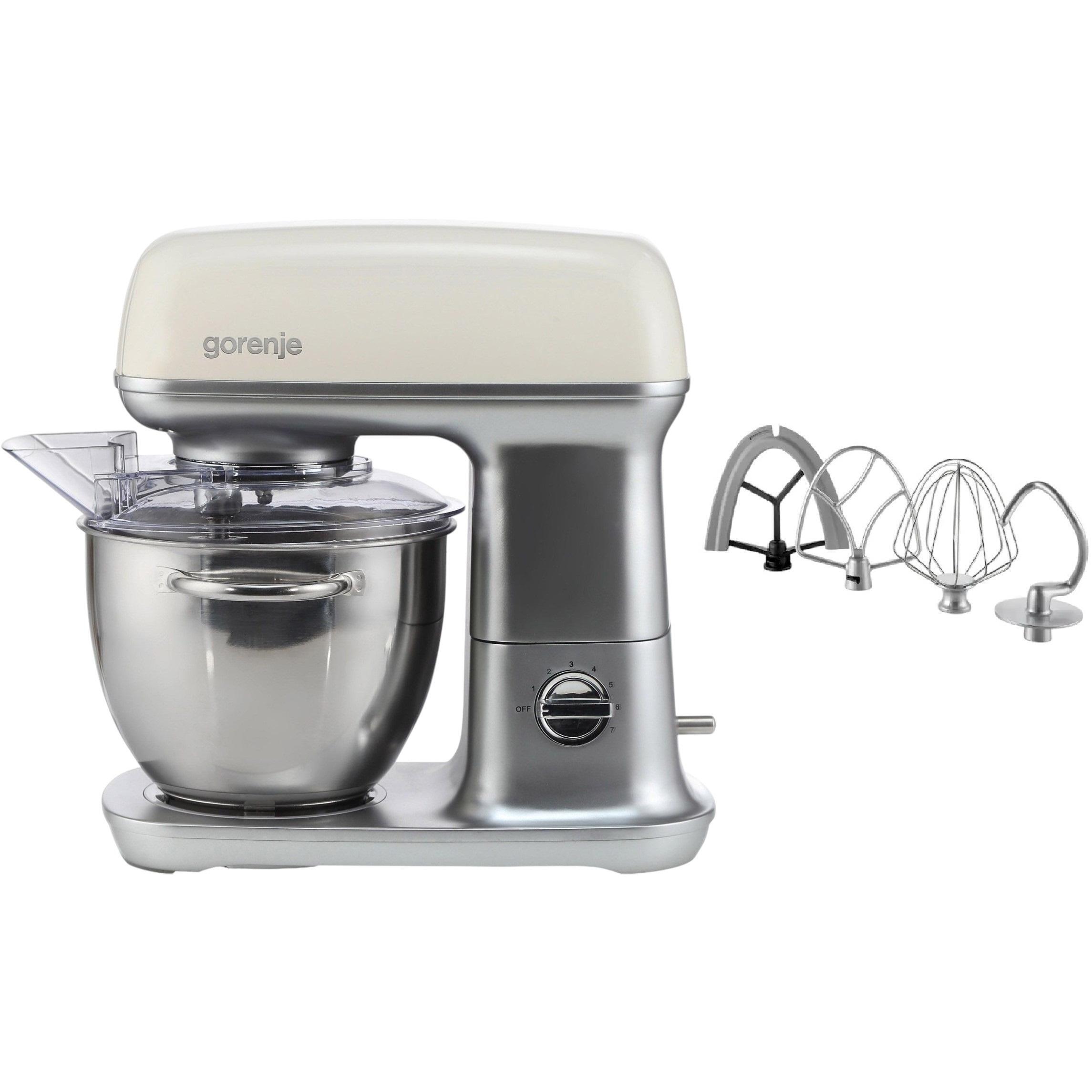Змішування, збивання, замішування. Прилад постачається з гачком для тіста, вінчиком і пласкою й інноваційною гнучкою кописткою. Вінчик перемішує інгредієнти та збагачує їх повітрям, щоб ви отримали м’яку та повітряну консистенцію; гачок для тіста ефективно справиться навіть із найтугішим тістом; копистка збиває неймовірні вершки та ніжну піну з яєчного білка, а гнучка копистка — відмінний інструмент для приготування найніжніших вершкових сумішей і підлив.
