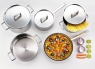 Набір професійного посуду Gorenje CWSA 08 HC. Складається з двох каструль з кришками, ковша з кришкою, каструлі з антипригарним покриттям і низькою каструлі без кришки. Посуд виконана з високоякісної хромонікелевої сталі 18/10, яка стійка до перепаду високих температур. Витримує миття в посудомийній машині.