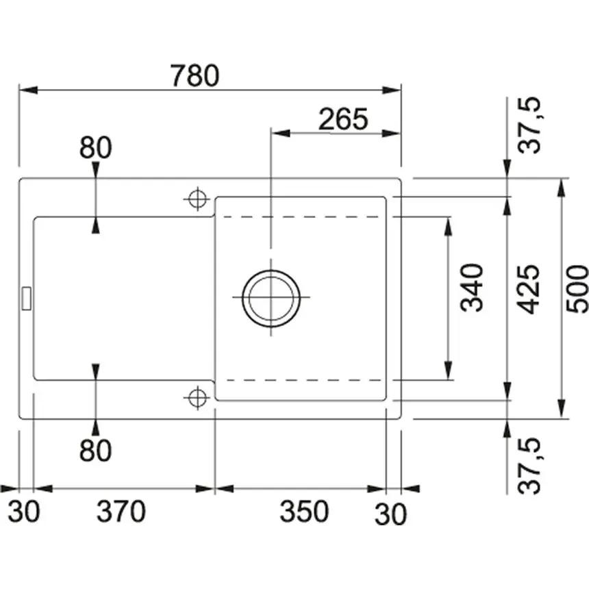 Технічні характеристики Мийка кухонна Franke Maris, фраграніт, прямокутник, з крилом, 780х500х200мм, чаша - 1, врізна, MRG 611, онікс: