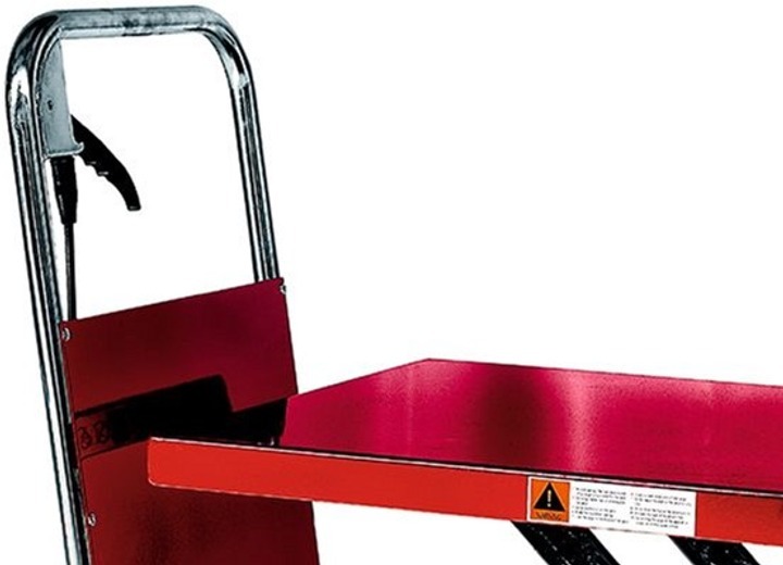 Розмір робочої поверхні 91.5×50 см дозволяє розмістити габаритні предмети, а міцна платформа витримує інтенсивну експлуатацію. Завдяки гідравлічному приводу можна плавно регулювати висоту підйому до 130 см. Зручна педаль забезпечує легкий контроль підйому, а система фіксації гарантує безпечну роботу.