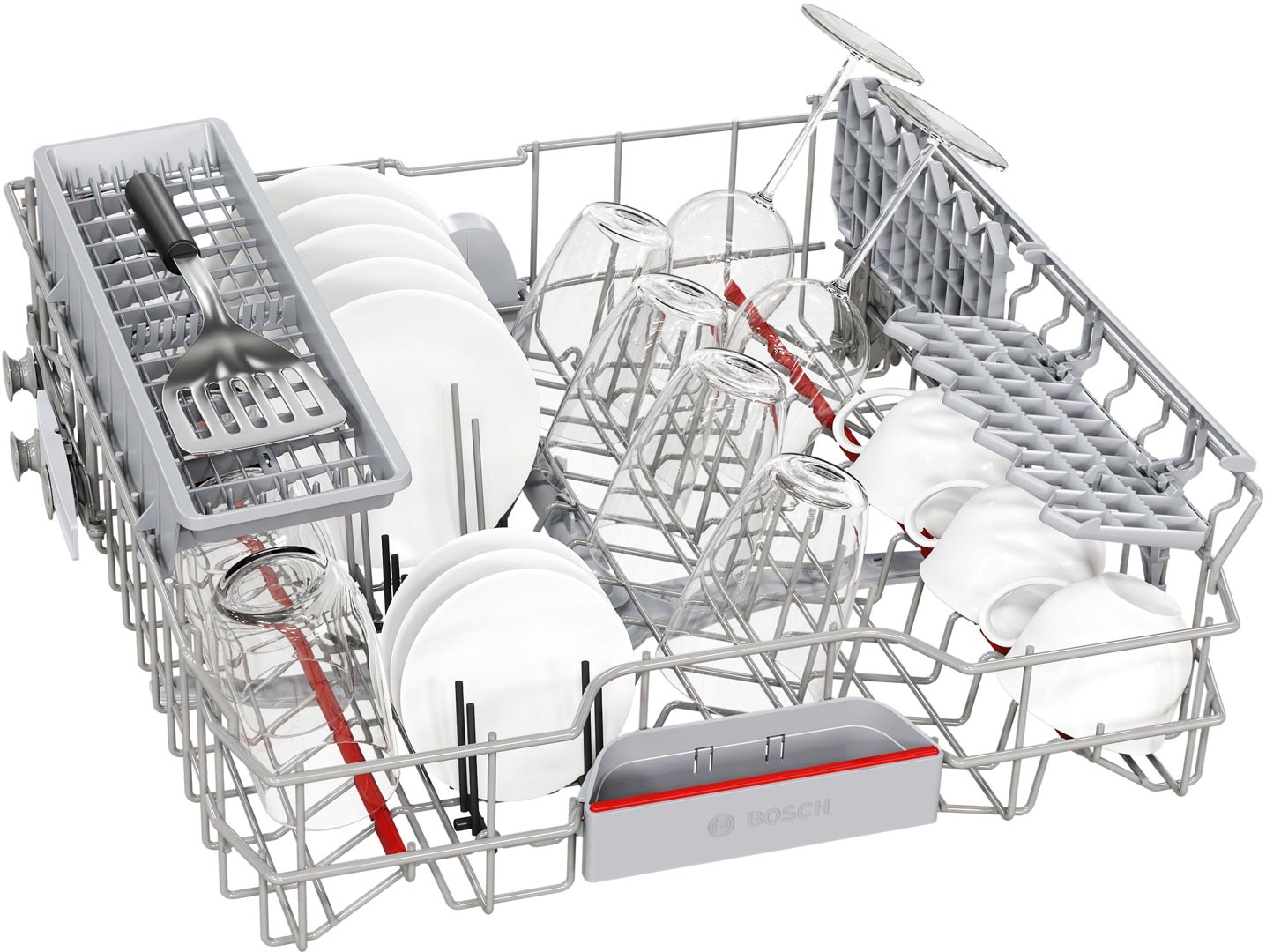 Внутри корзины и полки можно регулировать под любые тарелки, кастрюли, бокалы и столовые приборы. Низкий уровень шума позволяет запускать машину даже ночью.