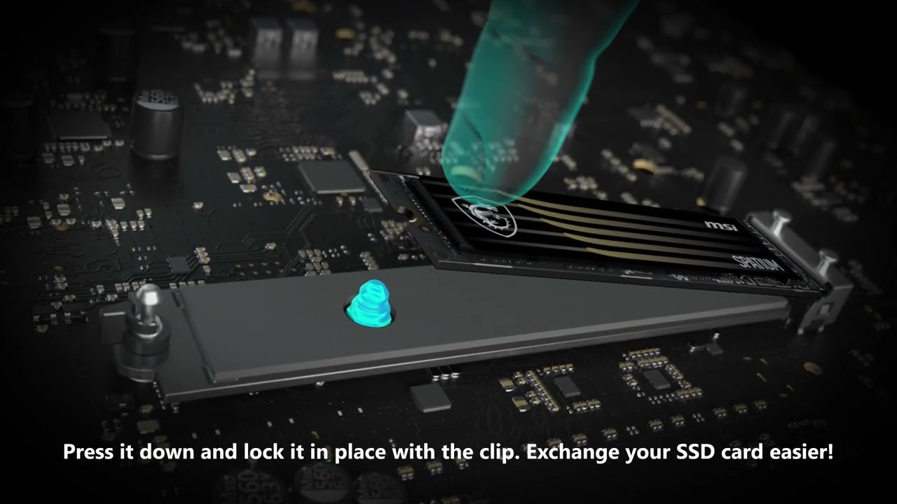 Ексклюзивні рішення MSI EZ M.2 Shield Frozr II та EZ M.2 CLIP II роблять установку M.2 безпроблемною. Вставте карту SSD у слот і натисніть на неї, щоб зафіксувати її за допомогою затискача. Щоб закріпити SSD, потягніть затискач назовні, і SSD буде вилучено. Процес є плавним, і вам не потрібно використовувати інструменти, як раніше. Один палець може забезпечити вам ідеальний досвід самостійного монтажу.