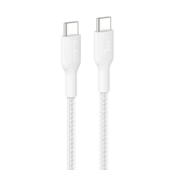 Кабель USB-C > USB-C заряджання/синхронізації Belkin 1м, 240Вт, Type-C, плетений, білий