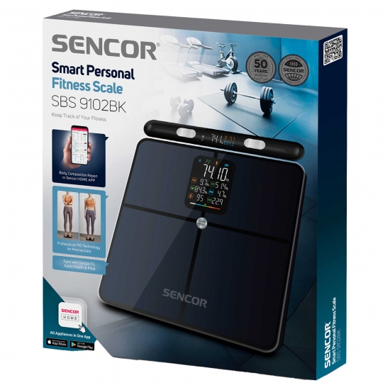 Через Bluetooth ваги синхронізуються з мобільним додатком Sencor HOME (iOS, Android) і підтримують інтеграцію з Apple Health, Google Fit та Fitbit. Програма зберігає історію вимірювань, дозволяє створювати профілі для декількох користувачів та формує звіт про аналіз складу тіла у форматі A4.