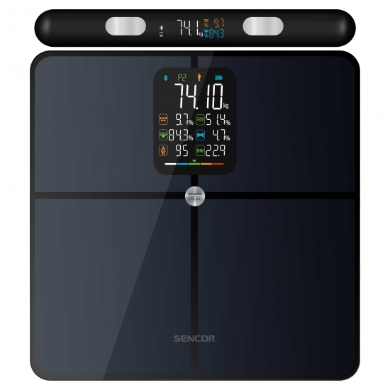 Розумні персональні ваги Sencor дозволяють проводити глибоку діагностику складу тіла за допомогою технології ITO, яка забезпечує 5-сегментне вимірювання – окремо для рук, ніг і тулуба. Це дозволяє точно відстежувати відсоток жиру, м'язової маси, води, кісткової тканини, а також обчислювати ІМТ і надає рекомендації щодо щоденного споживання калорій.