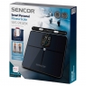 Опис Ваги Sencor підлогові діагностичні, 180кг, підсвіч., дисплея, підкл. до смартфону, 4хAAA, скло, темно-синій