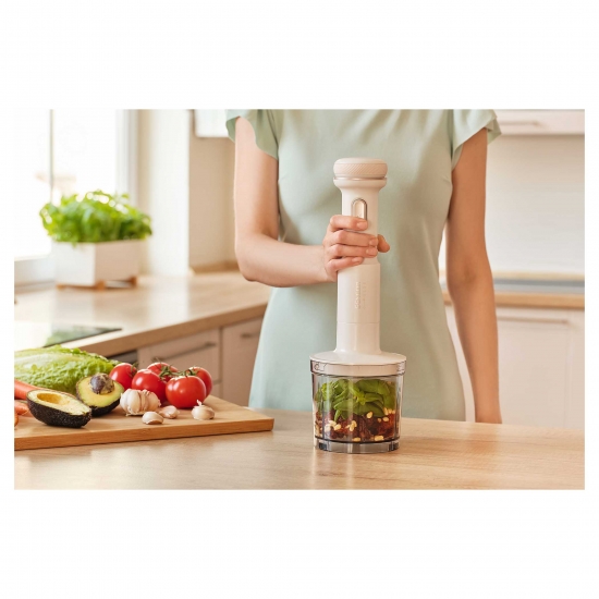 Потужний двигун 1400 Вт розвиває швидкість обертання 32 000 об/хв, чого справді достатньо для досягнення оптимальних результатів. У поєднанні з удосконаленою системою лез він легко подрібнює фрукти, овочі, горіхи, злаки та навіть лід. Ідеальні результати одним натисканням кнопки. Готуйте смузі, подрібнюйте лід, витягайте поживні речовини та використовуйте функцію автоматичного очищення – і все це одним натисканням кнопки. Насолоджуйтесь всім досвідом! Зручна мірна чашка є частиною кришки блендера. Вона дозволяє точно дозувати інгредієнти, необхідні для улюбленого смузі.