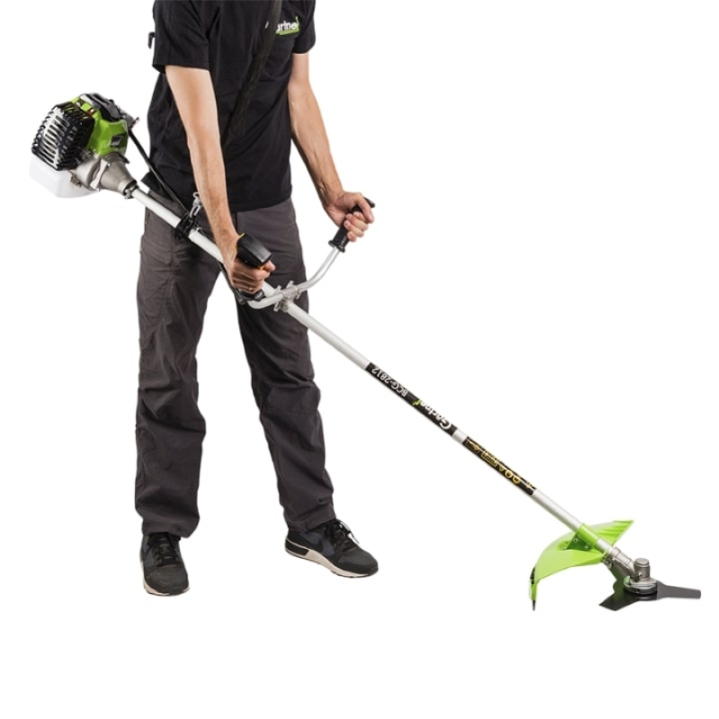 Тример бензиновий Gartner BCG-2812 призначений для скошування трави, бур’янів і дрібного чагарнику (до 1,3 см) на присадибних ділянках, у садах і парках. Оснащений двотактним бензиновим двигуном і ріжучою головкою з ножем або котушкою. Захисний кожух запобігає розльоту сміття, а ремінна система зменшує навантаження на руки під час роботи.