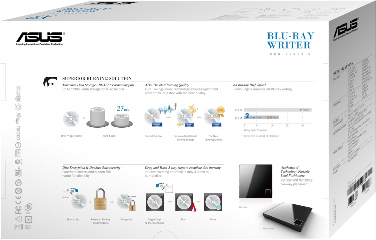 ASUS Привід оптичний портативний ASUS SBW-06D2X-U Blu-ray Combo burner M-DISC USB2.0 чорний Retail Box Slim