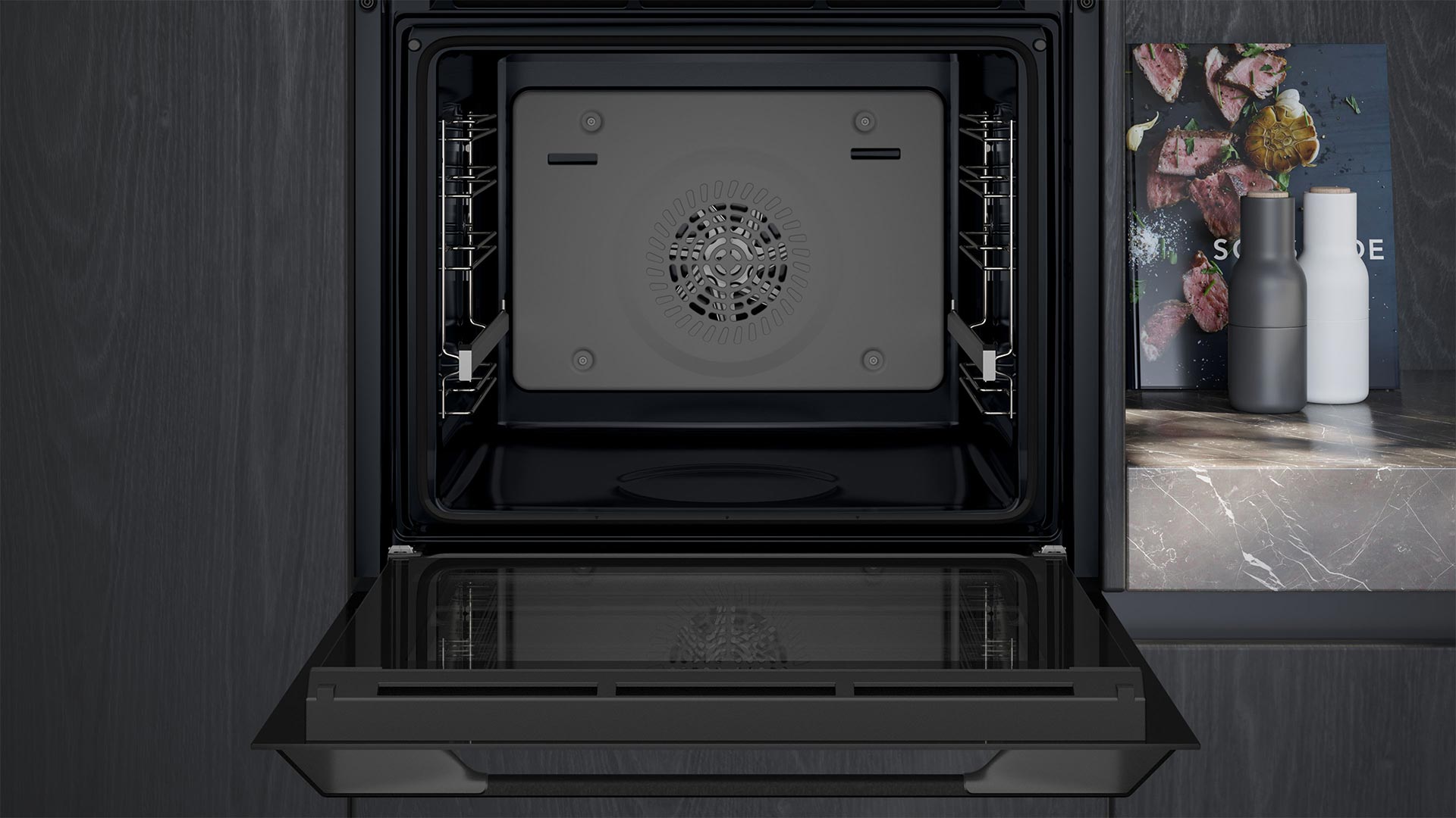 Духова шафа Siemens електрична, 76л, A, дисплей, конвекція, телескопічні направляючі, чорний