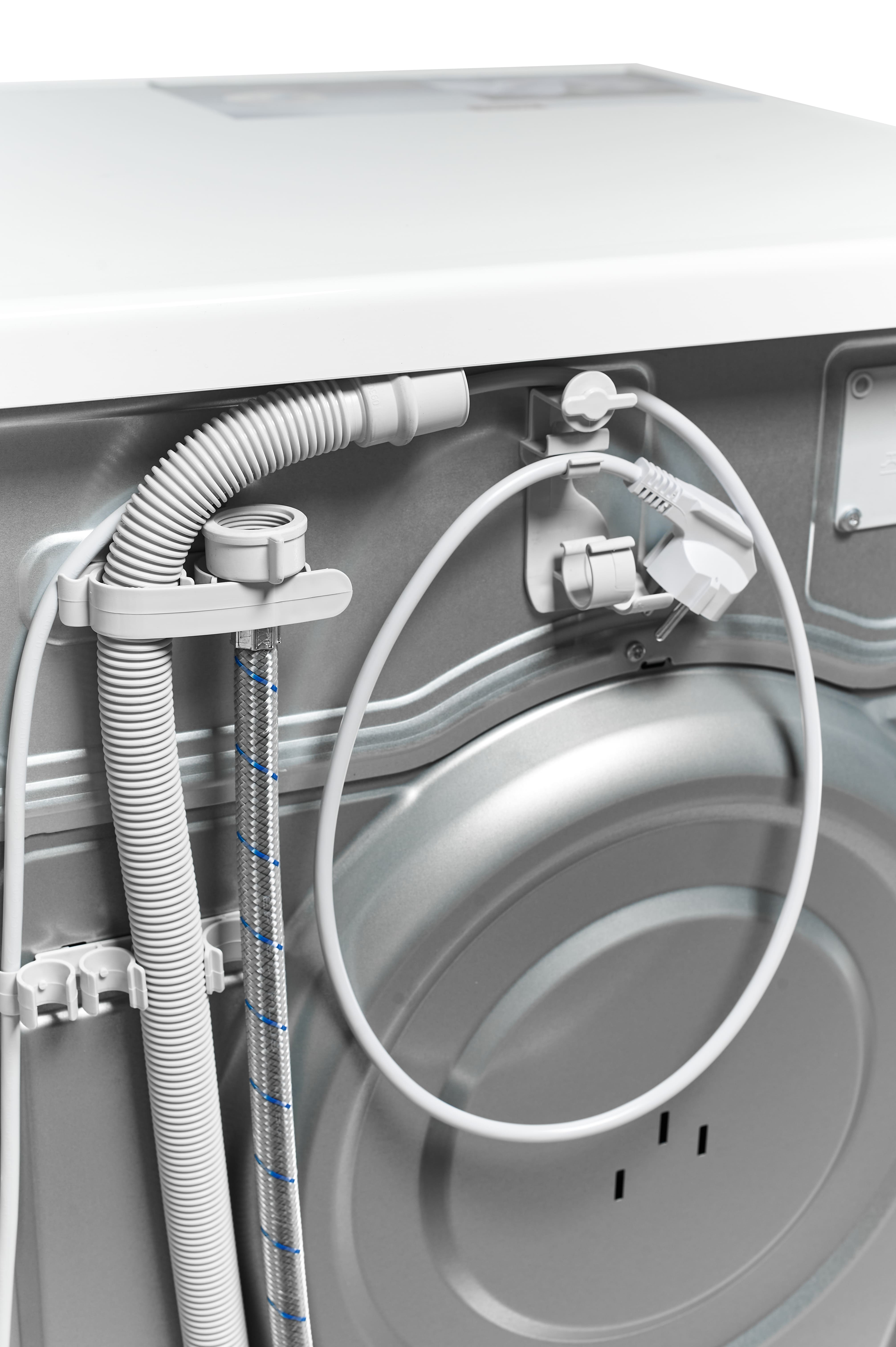 Система WaterControl System (WCS) контролює рівень води та запобігає протіканням. Дизайн моделі — стриманий і універсальний: білий корпус легко впишеться у будь-який інтер'єр пральні чи ванної кімнати. Глибина 64.3 см дозволяє розташувати машину навіть у стандартній ніші.