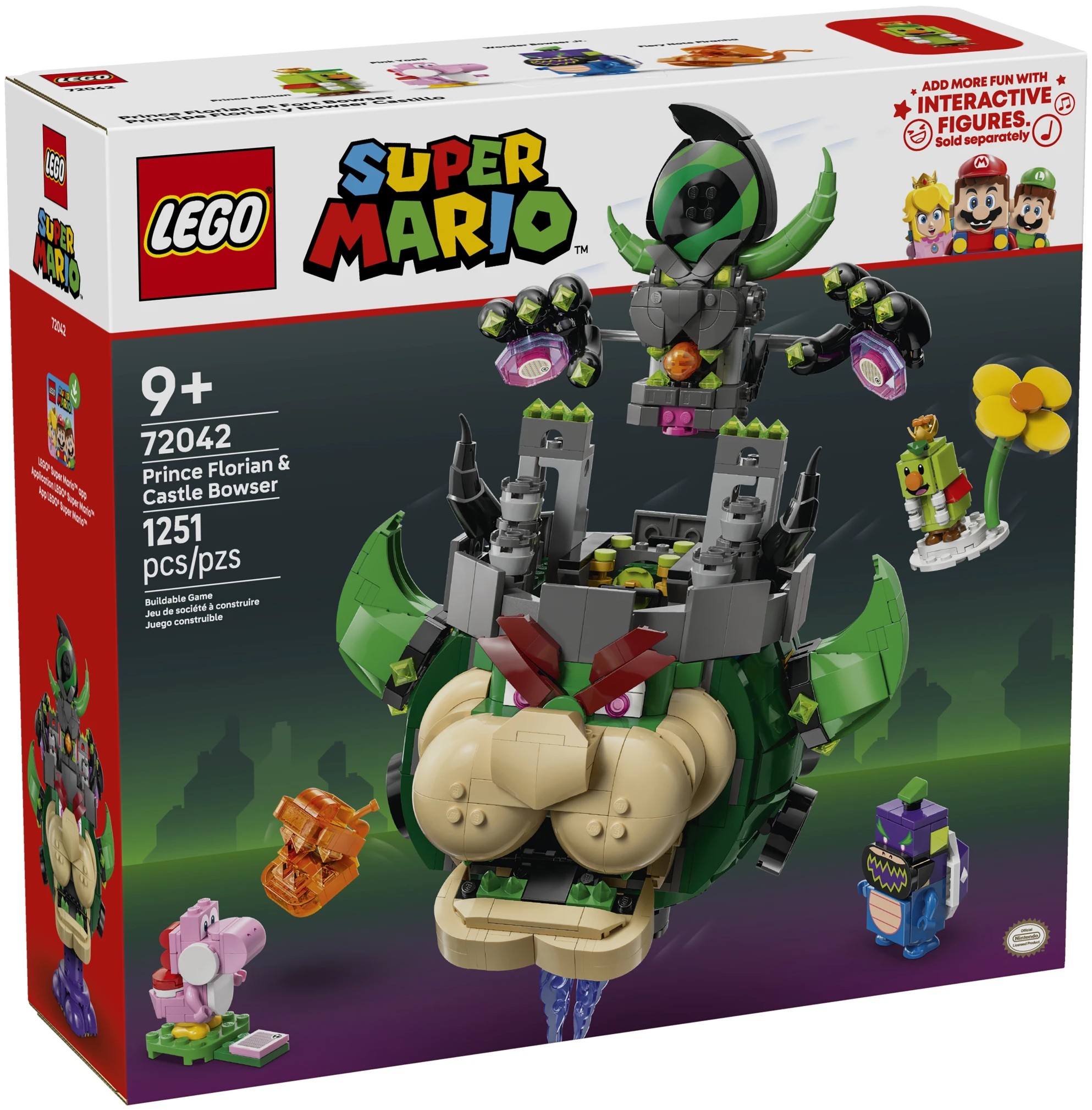 Цей детальний набір Castle Bowser з кубиків, містить іграшкові фігурки Рожевого Yoshi, Fiery Note Piranha, Prince Florian та Wonder Bowser Jr для сюжетної гри й демонстрування. Від'єднайте Castle Bowser від підставки і спускайтеся, щоб відкрити детальний інтер'єр, зокрема камеру в'язниці Prince Florian, і підніміть весь замок з підставки, щоб «літати» навколо, або просто підніміть верхню частину, щоб «полетіти» і вистрілити вогняною кулею з пащі.