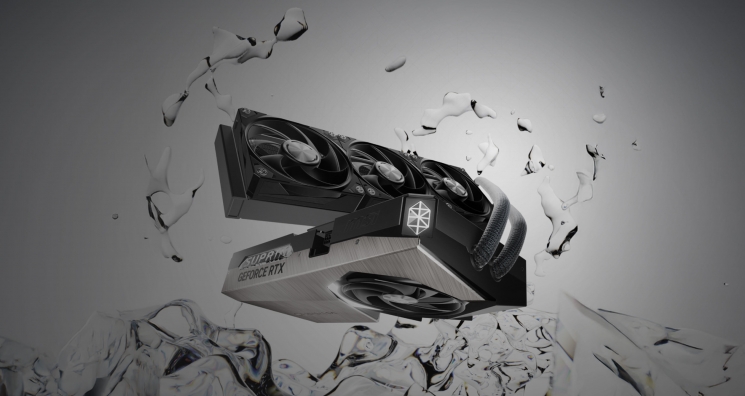 Інноваційна гібридна система охолодження SUPRIM LIQUID поєднує повітряне охолодження з вентиляторм STORMFORCE та рідинне охолодження за допомогою запатентованого водоблоку та 360-мм радіатора, забезпечуючи ефективне відведення тепла від графічного процесора та модулів пам'яті.