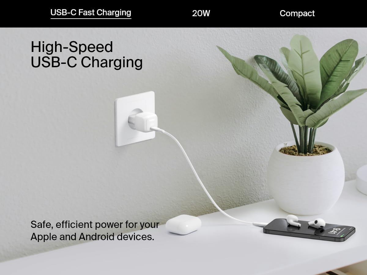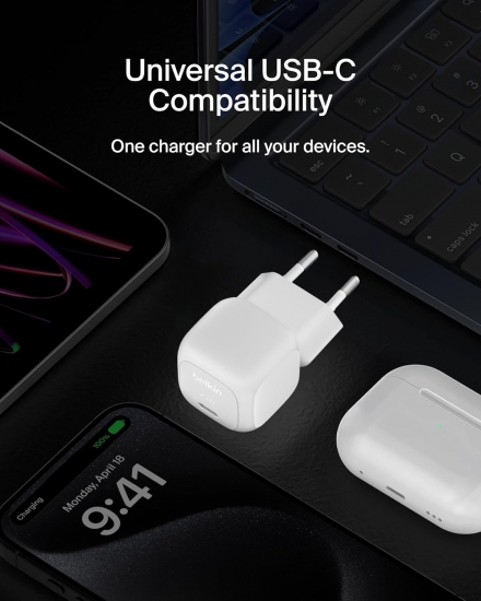 Зарядное устройство сетевое Belkin 20Вт USB-C PD PPS, белый
