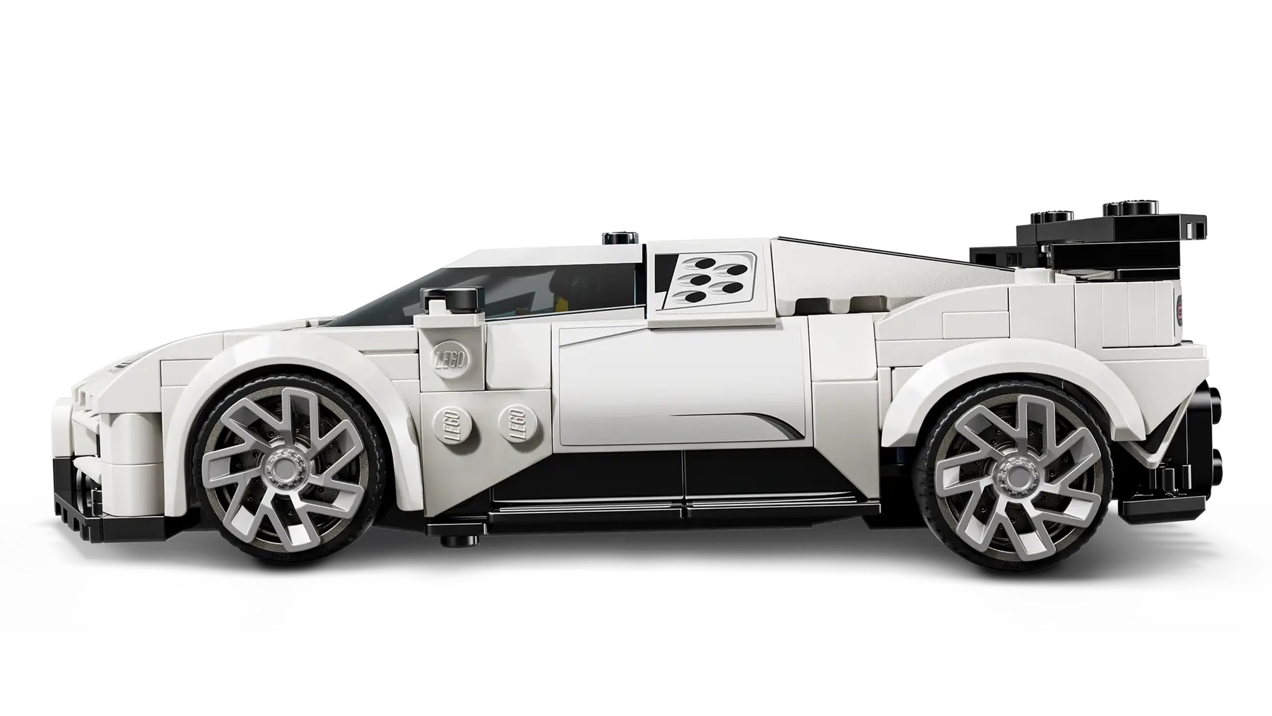 Модель автомобіля Bugatti LEGO® має 5 круглих повітрозабірників по обидва боки спортивного суперкара Centodieci, унікальні колісні диски, фари, решітку радіатора з підковою, заднє крило, що виступає, і 4 задні вихлопні труби. У набір з автомобілем від LEGO також входить мініфігурка водія Bugatti, яку діти можуть посадити за кермо й розіграти сюжетну гру.