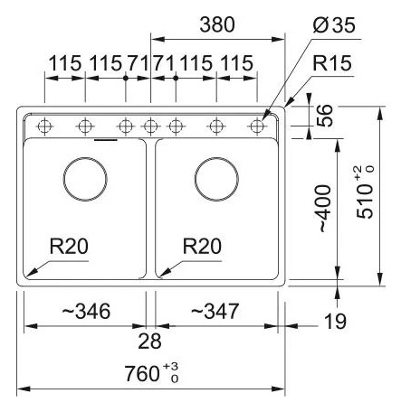 Головна - Побутова техніка, інструменти та товари для дому - Сантехніка - Кухонні мийки - Franke - Мийка кухонна Maris, фраграніт, прямокутник, без крила, 760х510х200мм, чаша - 2, врізна, MRG 620 TL, сірий камінь