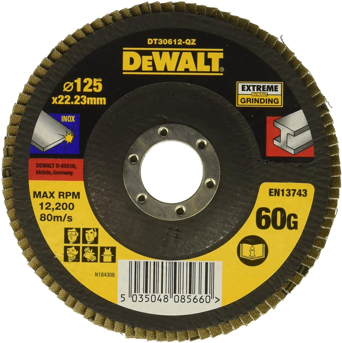 Технічні характеристики Диск пелюстковий шліфувальний DeWalt INOX Extreme 125x22.23мм G60мкм: