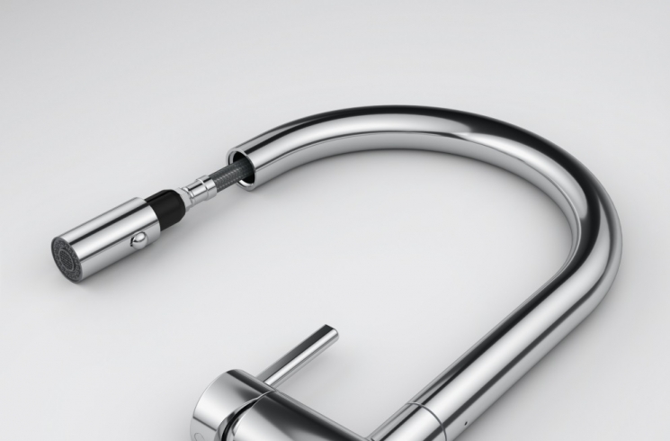 Кухонний змішувач з поворотним витяжним виливом з душем і бічним важелем керування. Економить до 50% води завдяки ЕКО картриджу, що має два рівня відкривання. Також картридж дозволяє змінювати співвідношення гарячої та холодної води, таким чином можна економити газ чи електроенергію, якщо вода підігрівається бойлером чи котлом, або зменшити рахунки на гарячу воду.