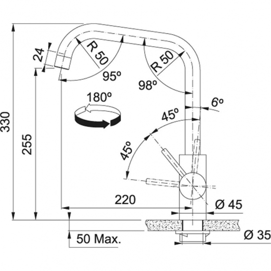Головна - Побутова техніка, інструменти та товари для дому - Сантехніка - Змішувачі - Franke - Змішувач для кухні Eos Neo U, довж.виливу - 220мм, поворотний, 1+аератор, нерж