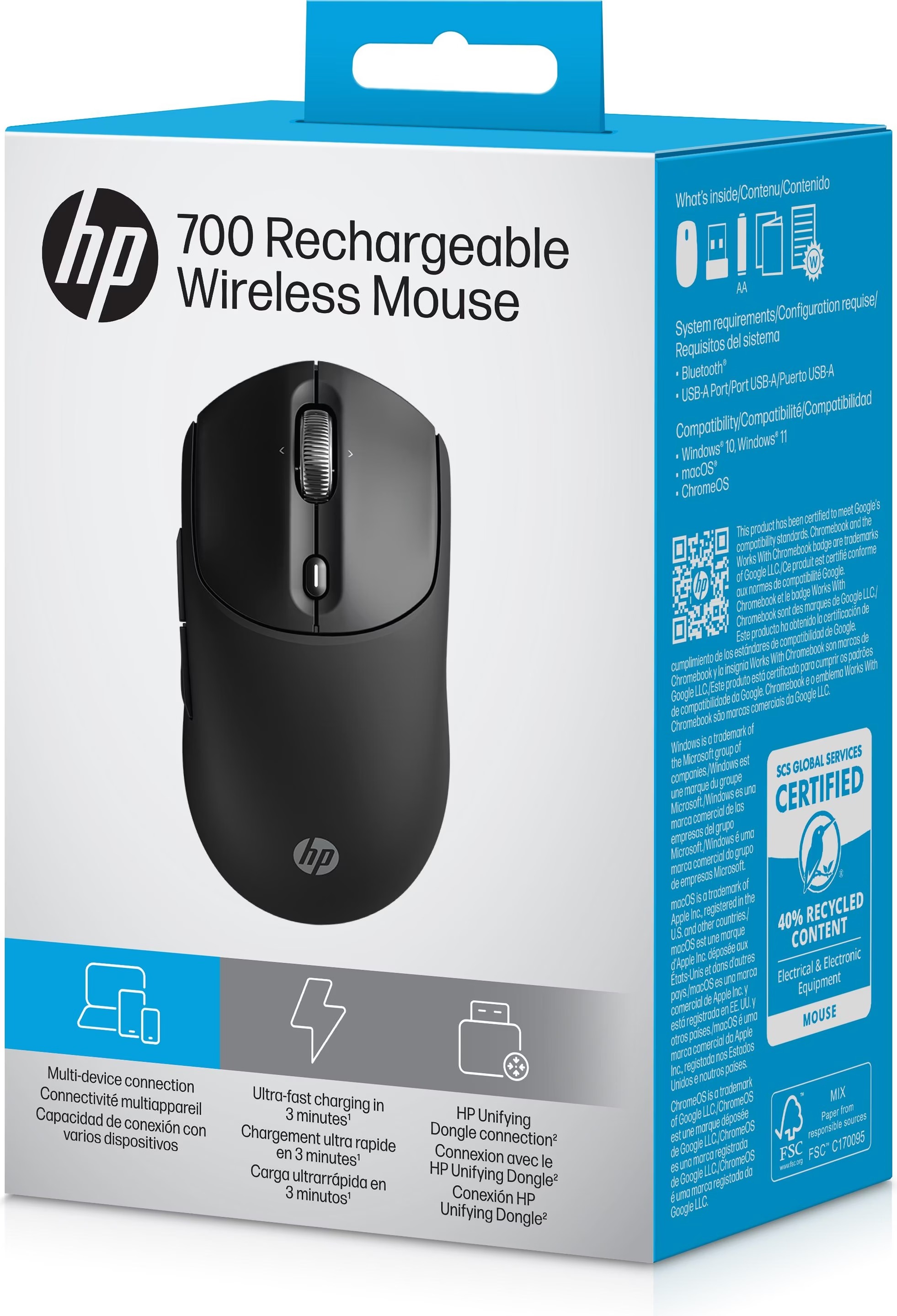 Мышь HP 700 Rechargeable, WL/BT, черный